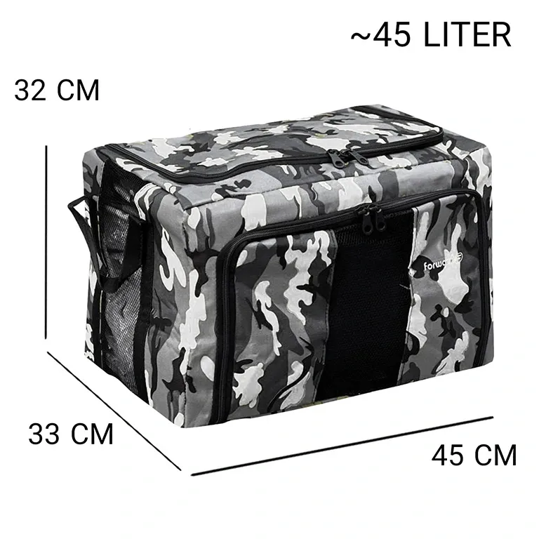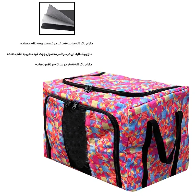 نظم دهنده سفری و کمد فوروارد مدل FCLT4444-PLUS از برند فوروارد می باشد و مناسب جهت نظم دهی به وسایل کمپینگ و یا پیک نیک میباشد. داخل نظم دهنده از آستر و ابر جهت فرم دهی و افزایش مقاومت محصول استفاده شده است. FCLT4444-PLUS دارای یک زیپ در قسمت جلو جهت دسترسی آسان تر به وسایل و یک زیپ در قسمت بالایی آن میباشد. در قسمت جلو و کنار ساک پیک نیک از جنس تور استفاده شده که مصرف کننده بتواند به وسایل داخل نظم دهنده نظارت داشته باشد. ساک پیک نیک FCLT4444-PLUS گزینه ای مناسب جهت استفاده در پیک نیک، داخل ماشین و یا داخل کمد لباس میباشد.