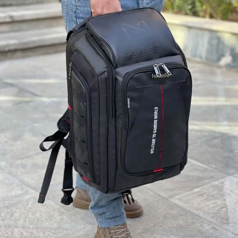 دارای محفظه اصلی در قسمت پشتی همراه با کاور جداشدنی و ضربهگیر ۵ طرفه (جلو، پشت، چپ، راست، کف) مناسب برای لپتاپهای 15 تا 18 اینچ گیمینگ