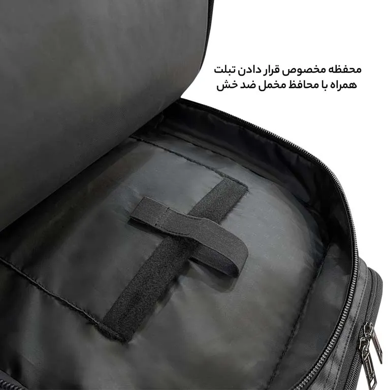 محفظه میانی بزرگ با بخش جداگانه برای لپتاپ دوم یا کیبورد گیمینگ مجهز به پد ضخیم